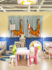 GKAPC_HILTON GARDEN INN – Лоби на вътрешната градина на хотел HILTON, принт върху стъкло – тавана на помещението