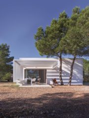 Къщата се намира на испанския остров Форментера в Средиземно море. Съществуваща малка постройка е била преустроена и разширена, като в момента се простира на 64 кв.м (8×8). Решена изцяло в бяло, сградата се вписва хармонично в околната среда. Новата конструкция се съобразява до голяма степен с околната растителност, която е напълно запазена. Силуетът на къщата наподобява бяла кутия, в която се помещават на едно ниво зоната на дневната, трапезарията и кухнята, спалня и баня. Покривът се използва като тераса и от него се открива впечатляваща гледка към околността. Акцент в екстериора е перголата над входното пространство, чийто растер е с интересно графично присъствие.