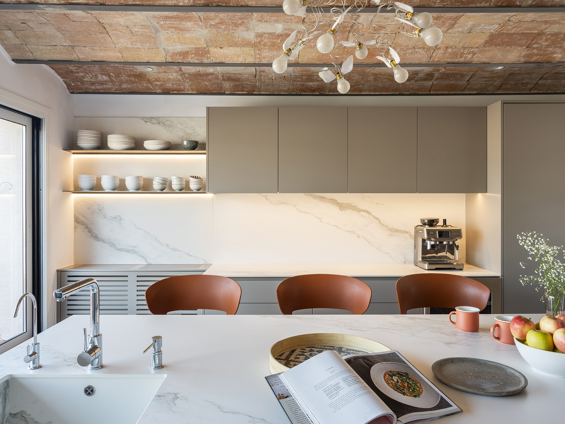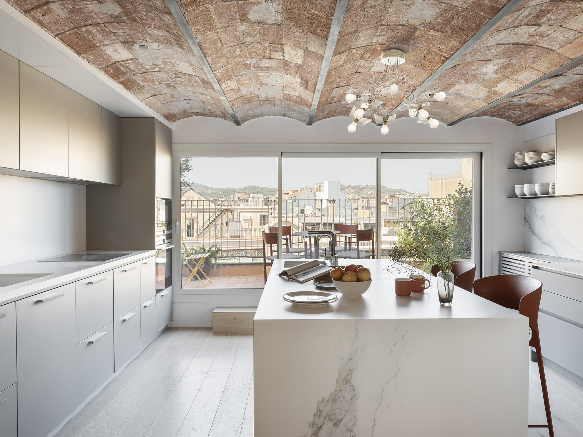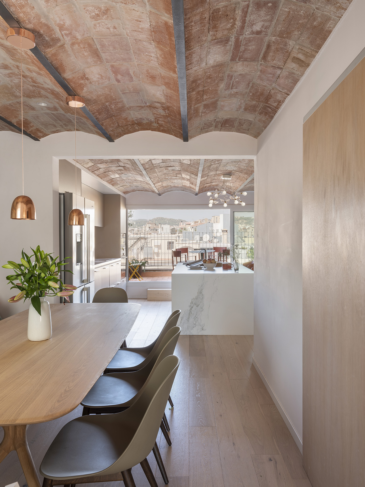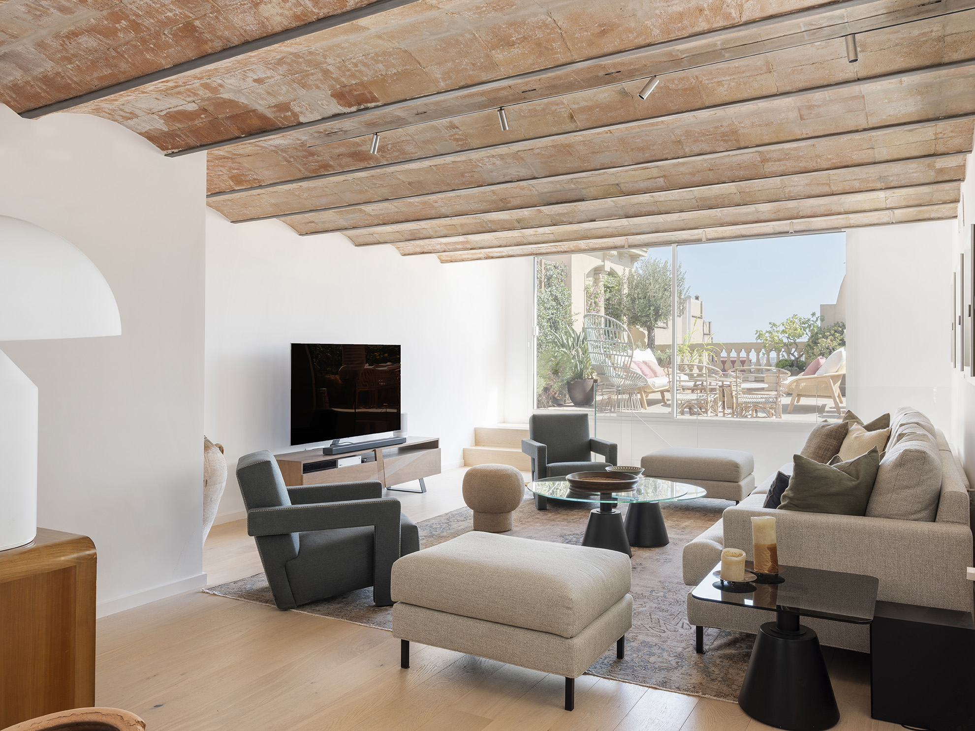 В квартал Eixample в Барселона, миналото и настоящето се срещат в дом, където традицията диша в хармония със съвременния уют. Просторната южна тераса, възстановените мозайки и откритите каталунски сводове връщат романтиката на отминали епохи, докато вътрешните пространства се отварят щедро към светлината и носят усещане за съвременен комфорт.