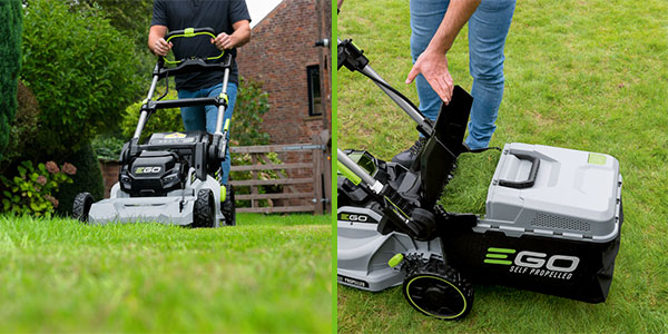 За косене на тревата може да използвате EGO косачките, които са достатъчно мощни и бързо се справят с тревни площи между 300м2 и 1200 м2. Имат самоход (т.е. не се налага да бутате косачката, тя има самостоятелно задвижване), обемен кош за събиране на тревата, възможности за мулчиране (ситно нарязване на тревата, която пада обратно на терена, като го подхранва), странично изхвърляне на тревата.