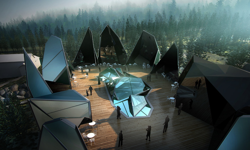 Концепцията на проекта e базирана на закономерностите, по които се образуват кристалите в природата. Една от уникалните особености на тези тела е способността им да се самоограждат с плоски стени. Стените им се пресичат в ребра (ръбове), ребрата – във върхове (рогове). Архитектурният проект на хотела включва функционална вътрешна структура, остенена с кристални форми, съдържащи ребра, рогове и стени. Кристалните форми са врязани в плътен обем, който напомня на характерните за района каменни реки.
