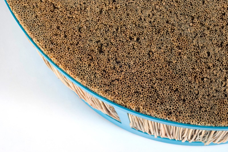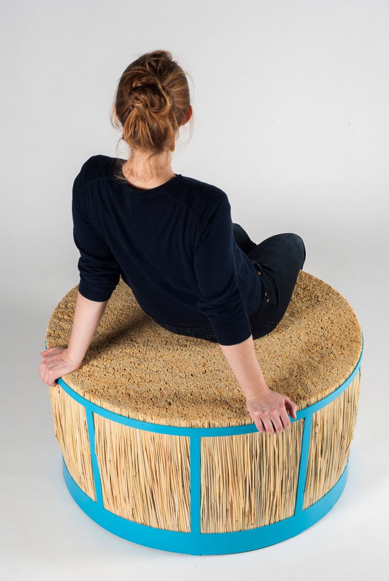 Табуретка, изработена от слама, шперплат и метал. Предлага се в два размера – малък и голям. Дизайнът е на Juan Cappa.